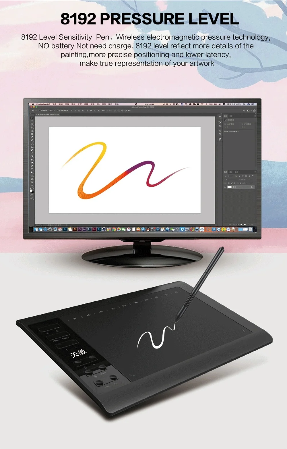 - High-precision pressure-sensitive pen for smooth, natural drawing